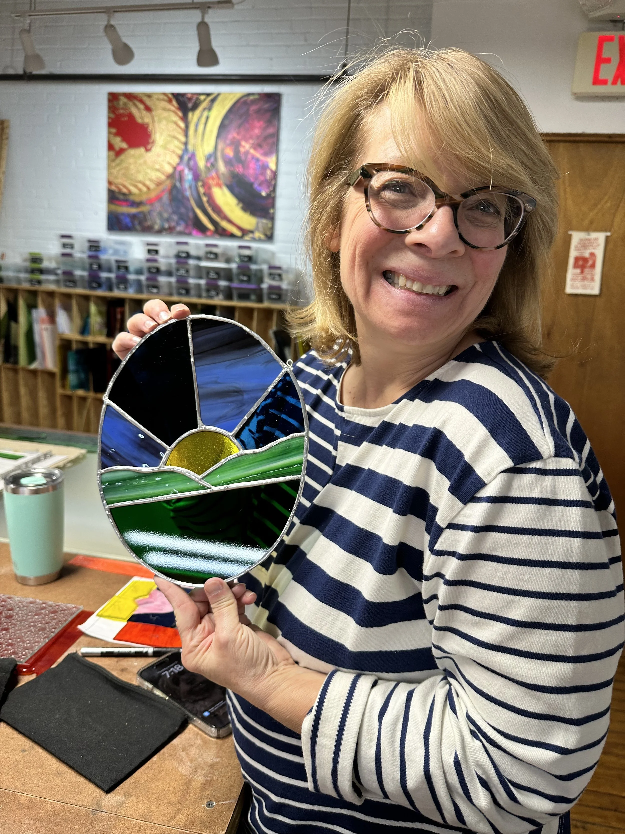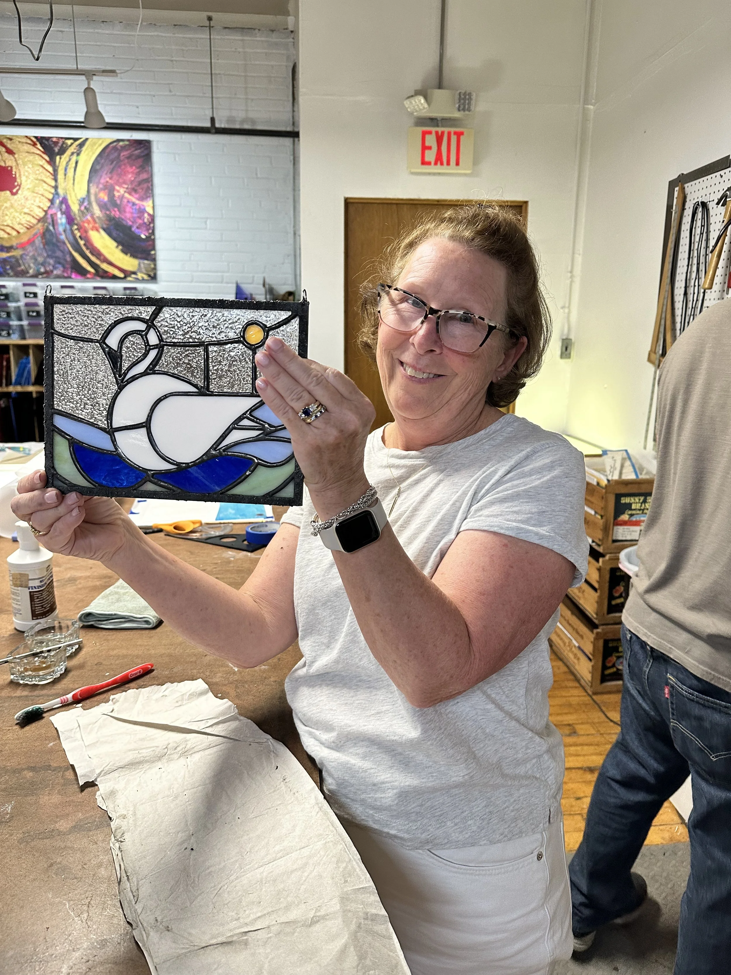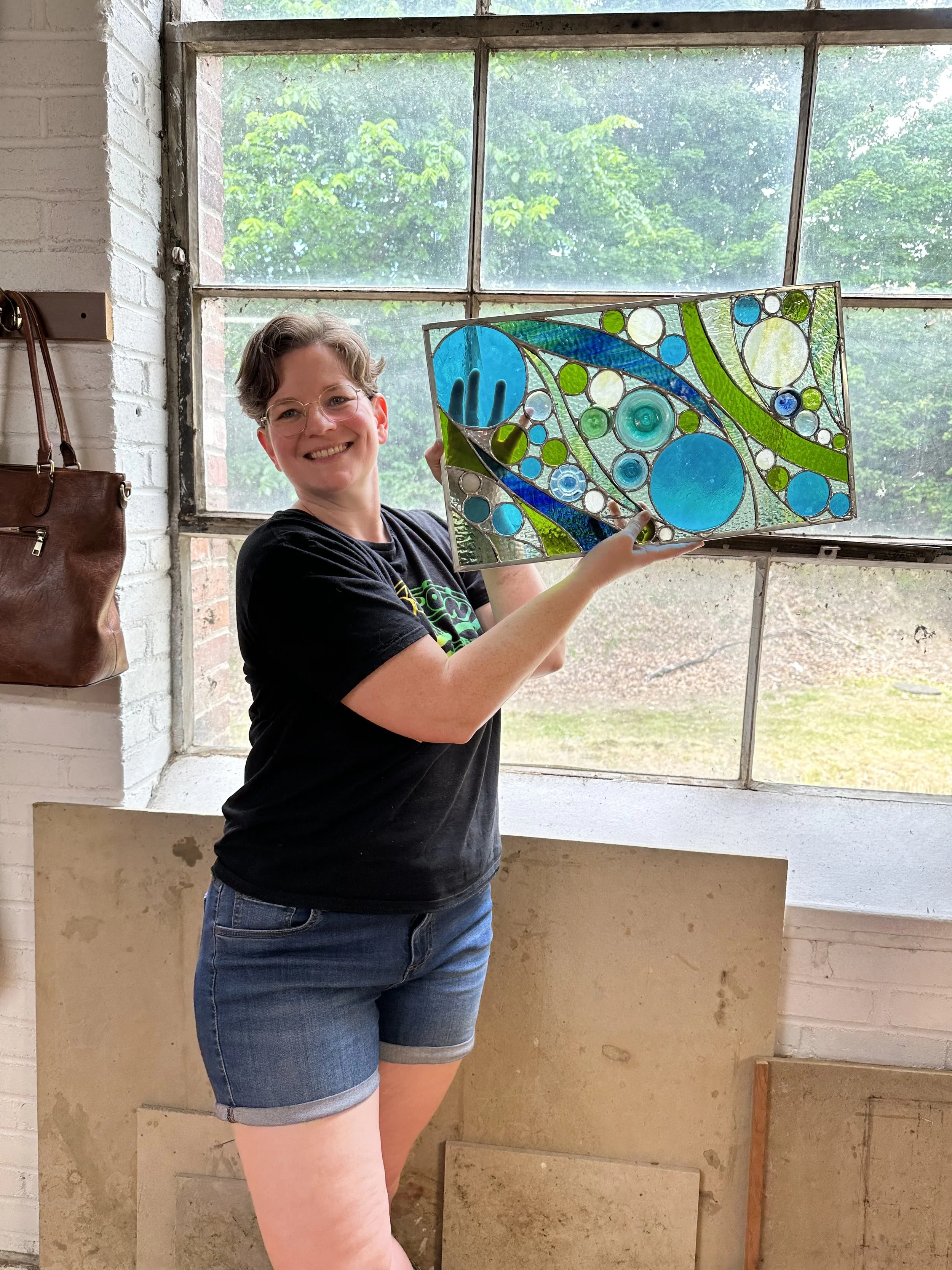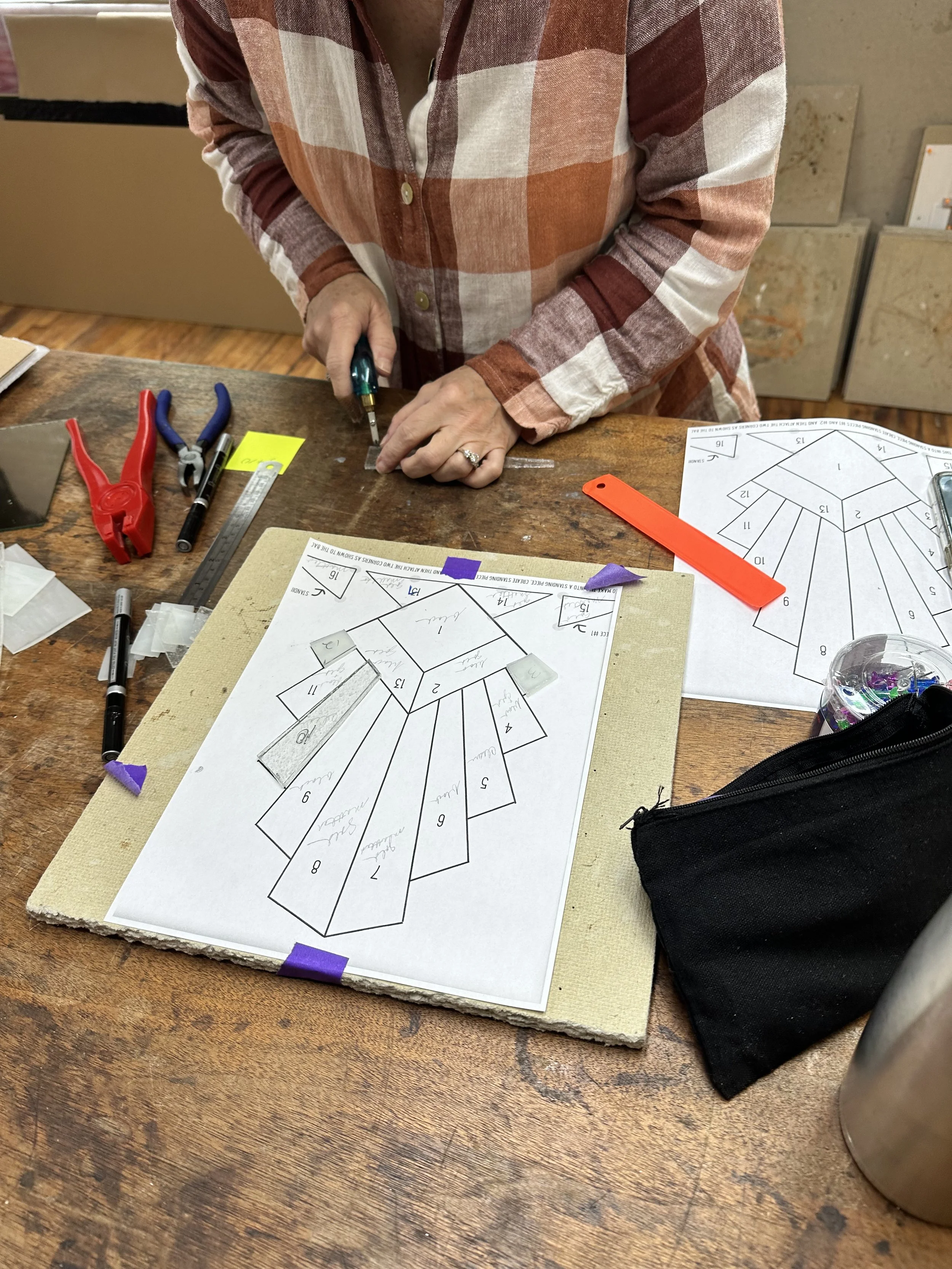 We teach the copper foil method of stained glass construction — a versatile technique developed by Louis Comfort Tiffany that allows for precise, detailed designs.